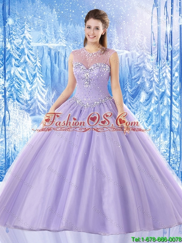 Fashionable Scoop Beading Quinceanera Dresses in Lavender