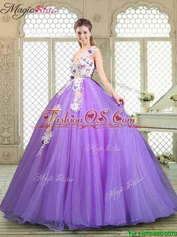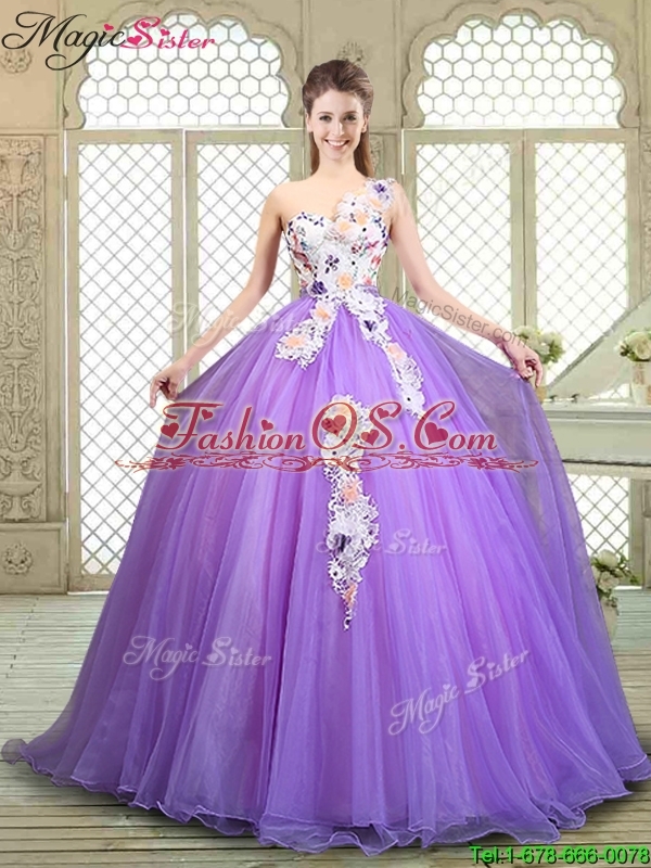 Popular Beading and Appliques Quinceanera Gowns with One Shoulder