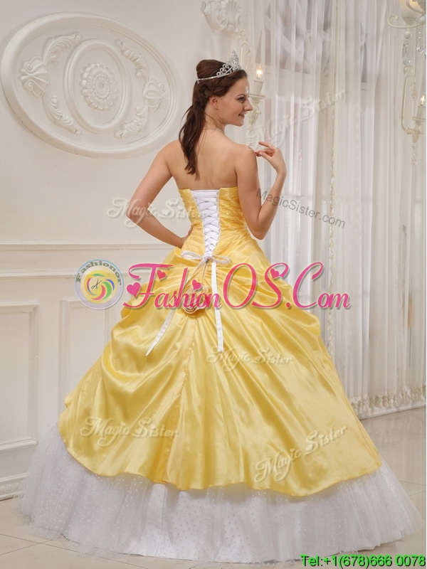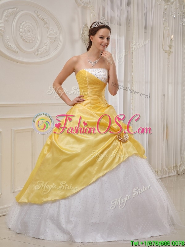 Modest Ball Gown Strapless Quinceanera Dresses in Yellow