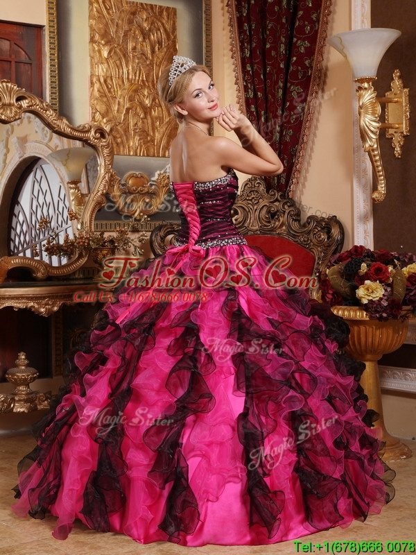Perfect Beading and Ruffles Quinceanera Gowns in Black and Red