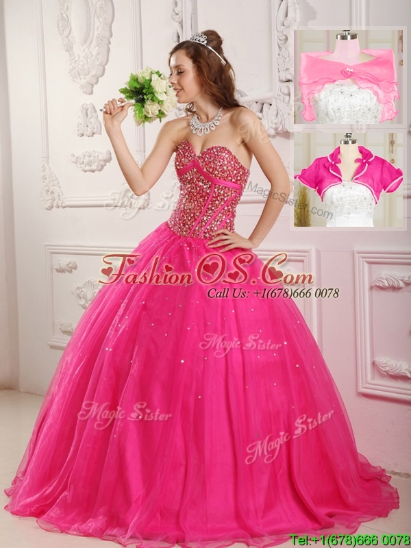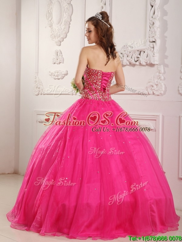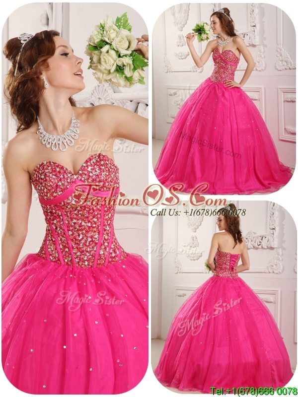 Popular A Line Hot Pink Quinceanera Dresses with Beading