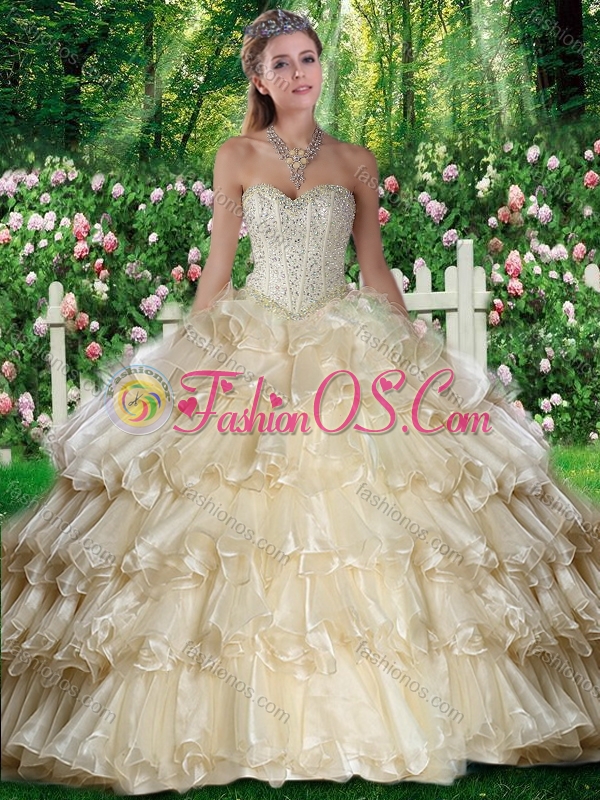 2016 Hot Sale Sweetheart Beading and Ruffled Layers Quinceanera Dresses