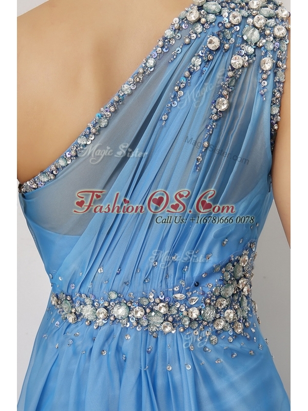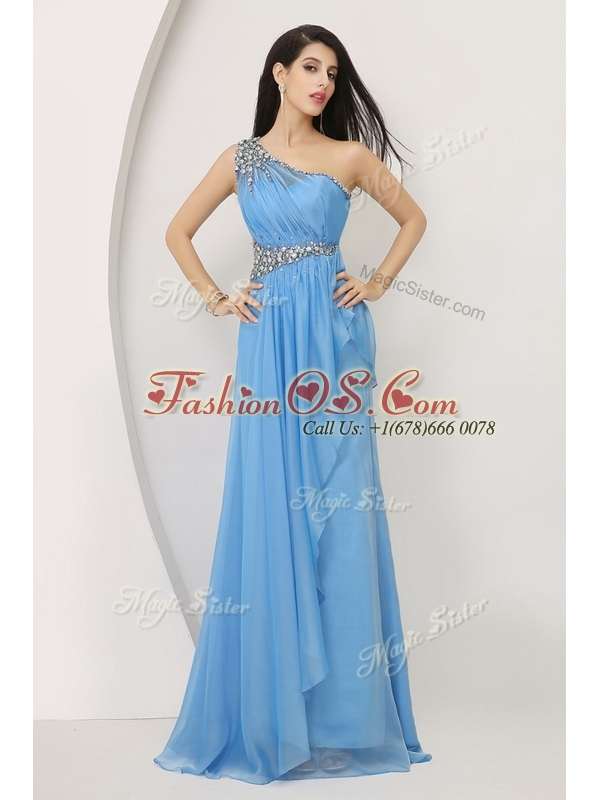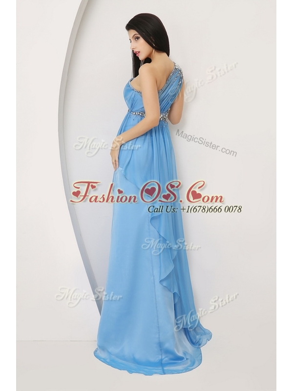 Cheap Empire One Shoulder Prom Dresses with Beading and Ruching