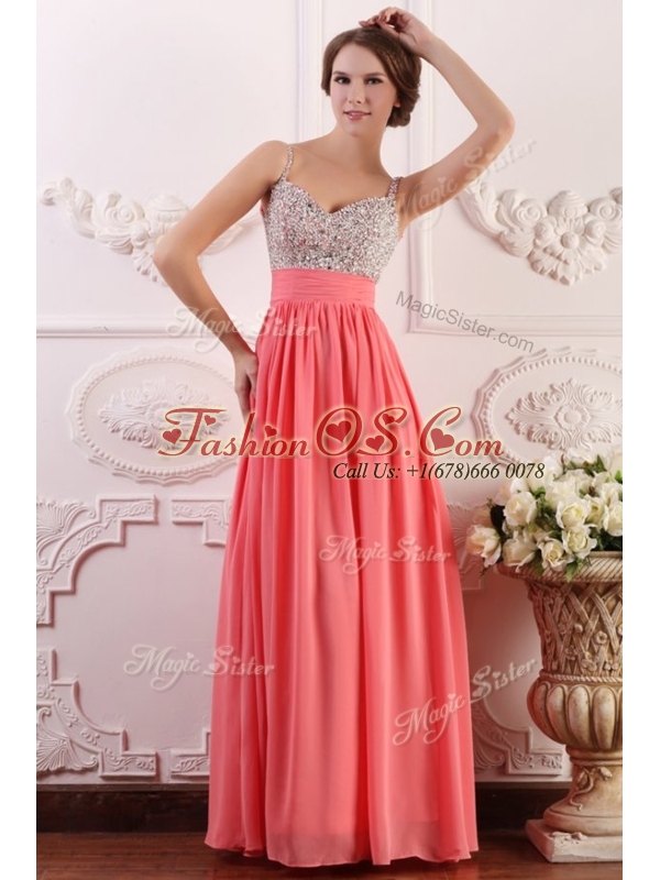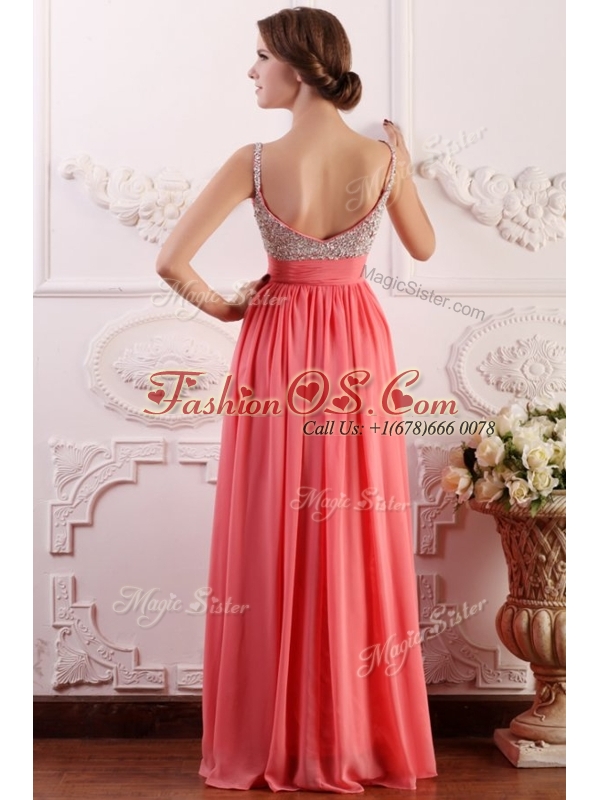 Most Popular Empire Straps Watermelon Prom Dress for Celebrity