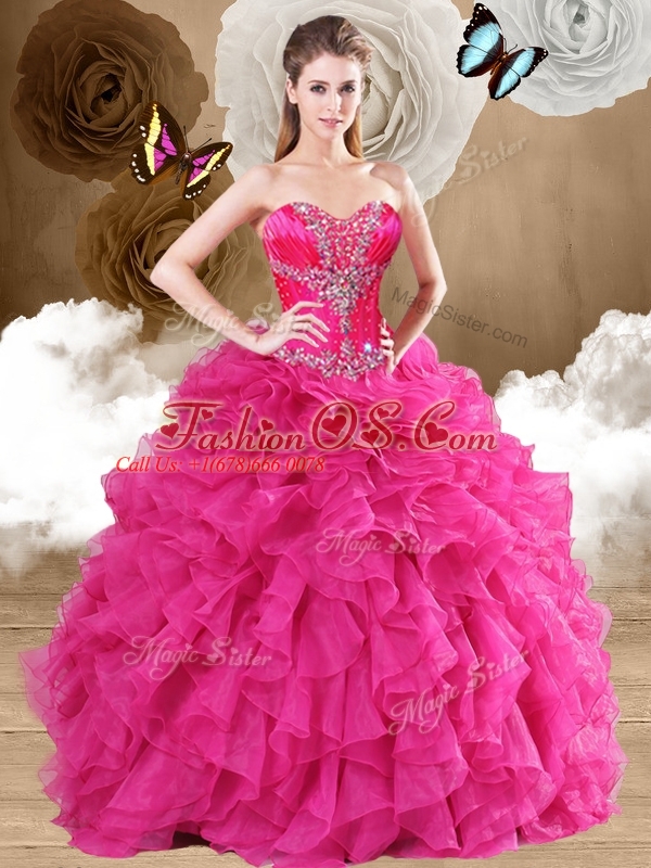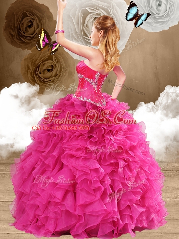 2016 Discount Ball Gown Fuchsia Sweet 16 Quinceanera Dresses with Ruffles