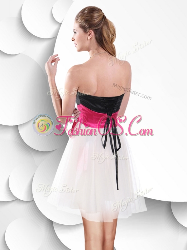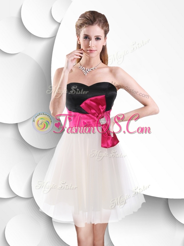 2016 Perfect Short White and Black Beautiful Prom Dresses with Bowknot