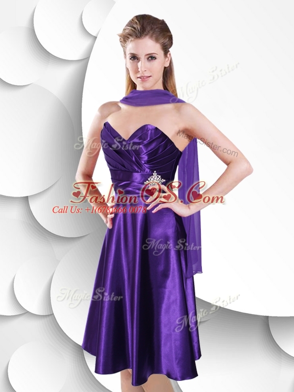 2016 Perfect Empire Sweetheart Elastic Woven Satin Beautiful Prom Dresses with Beading and Ruching
