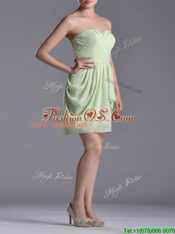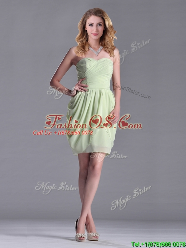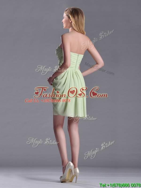 Simple Zipper Up Chiffon Yellow Green Dama Dresses for Quinceanera with Ruching