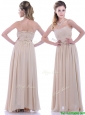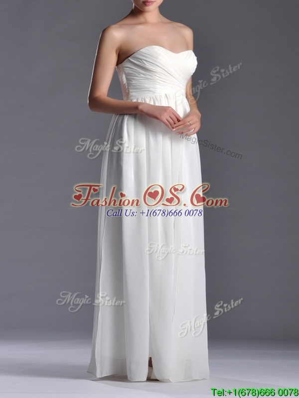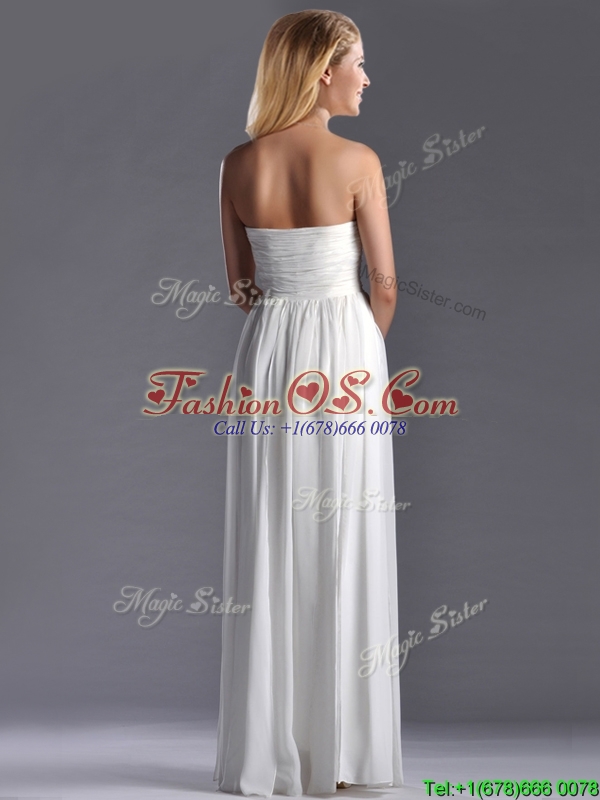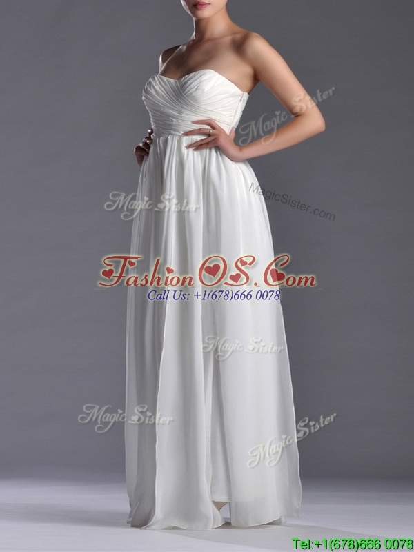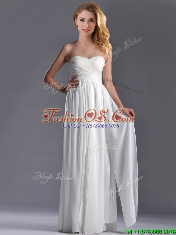 Exquisite Empire Sweetheart Ruched White Long Dama Dresses for Quinceanera in Chiffon