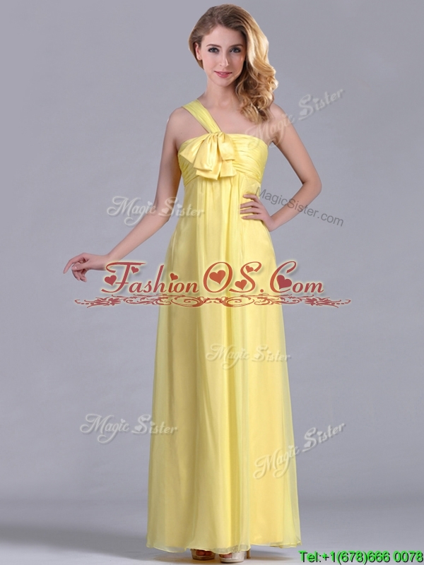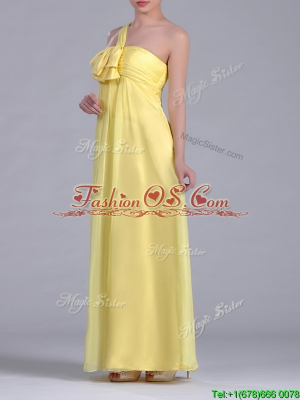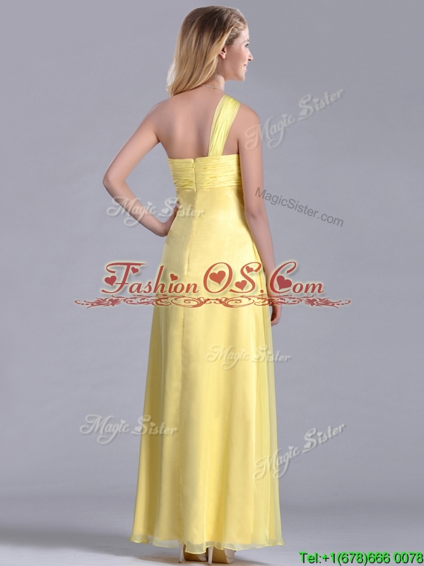 Exclusive One Shoulder Chiffon Yellow Dama Dress in Ankle Length