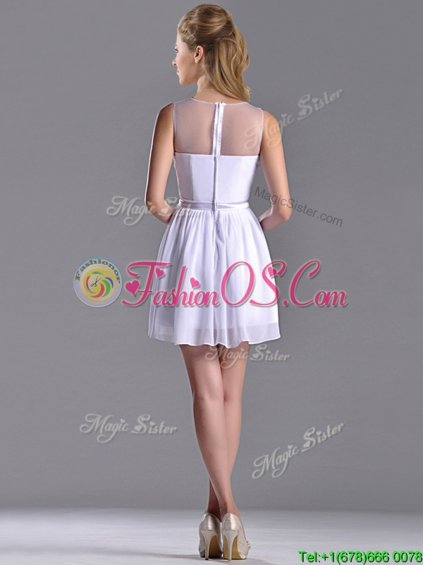 Fashionable See Through Scoop White Dama Dress with Ruching
