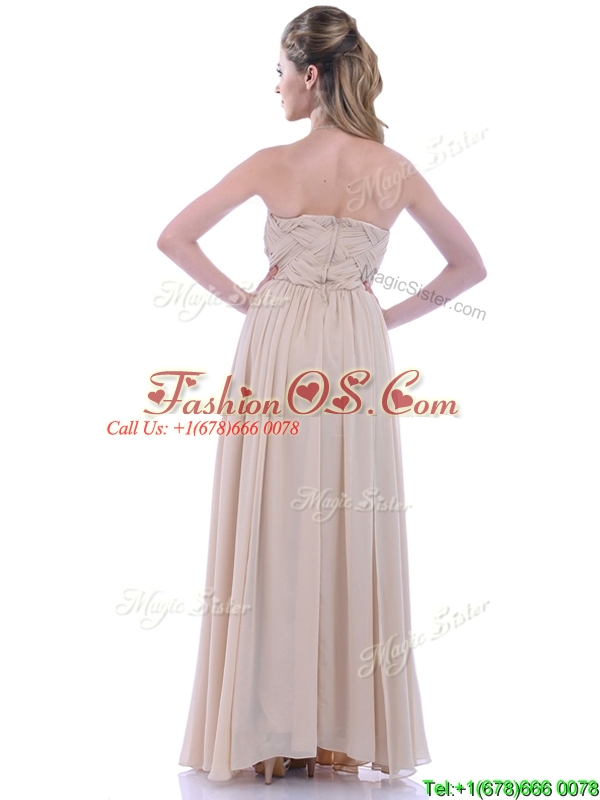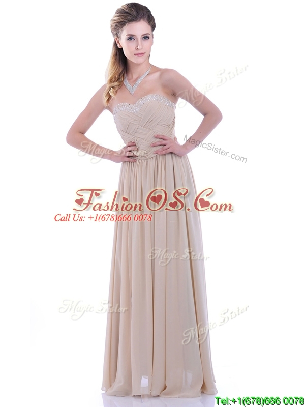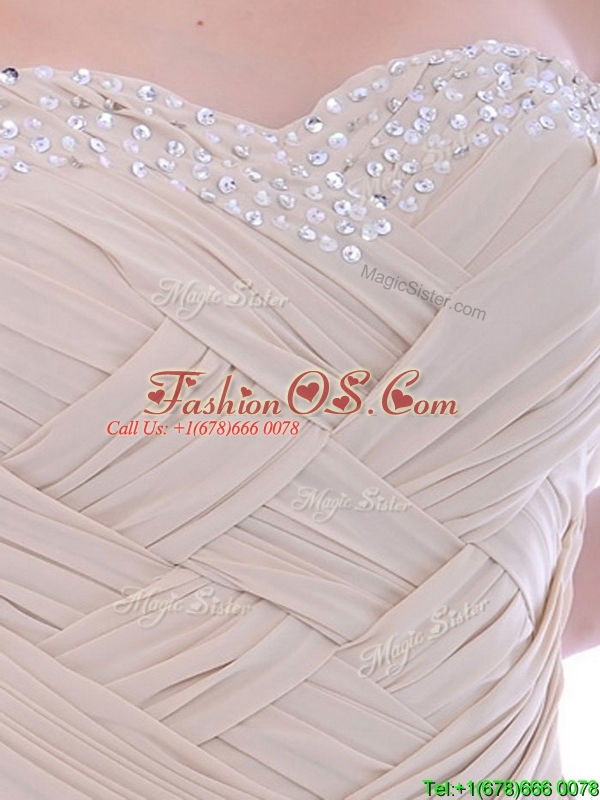 2016 Fashionable Empire Champagne Chiffon Dama Dress with Beading and Ruching