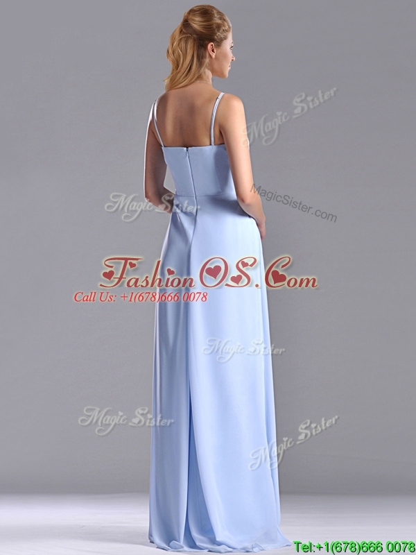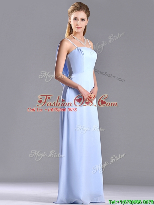Cheap Chiffon Spaghetti Straps Long Dama Dress with Zipper Up