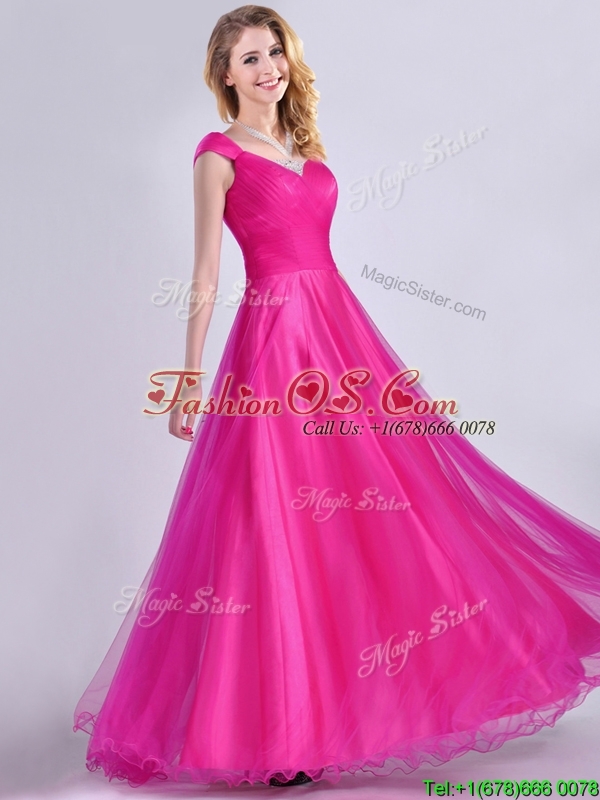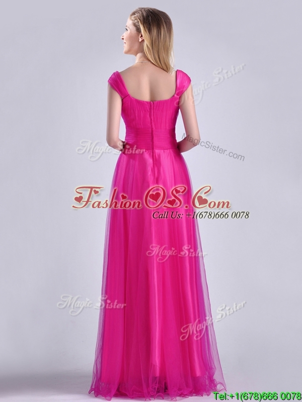 Exclusive Organza Beaded Top Hot Pink Dama Dress with Cap Sleeves
