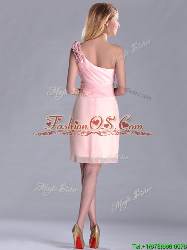 2016 Exquisite One Shoulder Side Zipper Dama Dress in Baby Pink