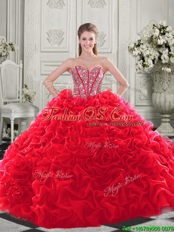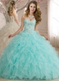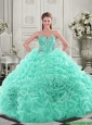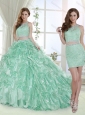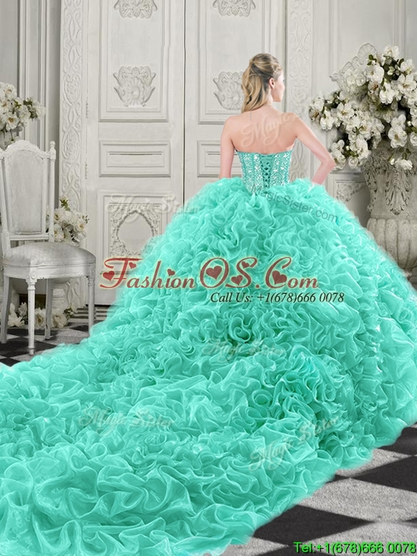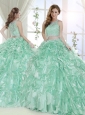 Elegant Visible Boning Organza Apple Green Quinceanera Dress with Chapel Train