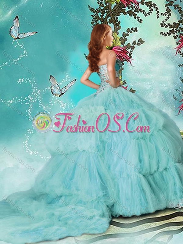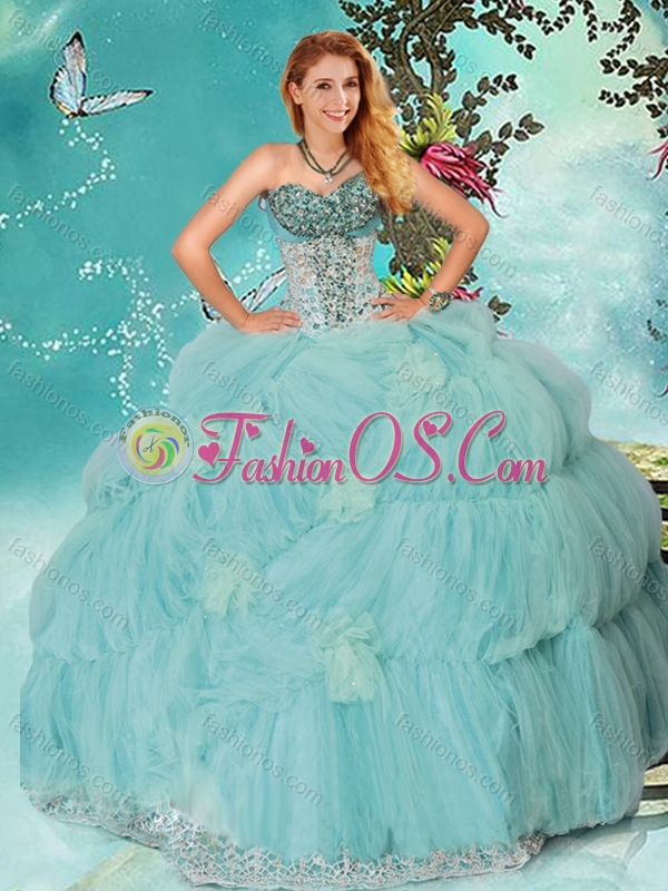 Discount Mint Sweetheart Quinceanera Gown with Beading and Handcrafted Flowers