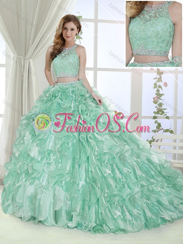 Cheap Beaded and Laced Bodice Apple Green Detachable Quinceanera Skirts in Organza
