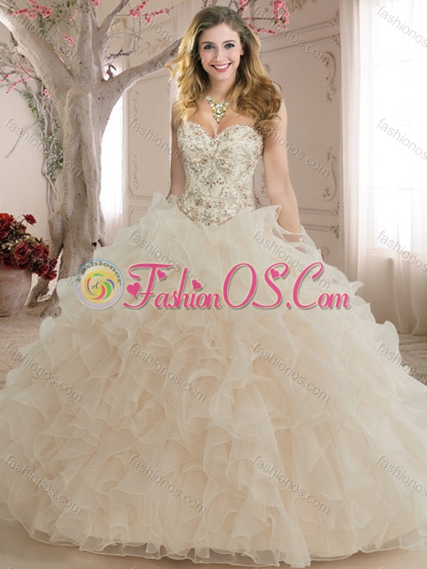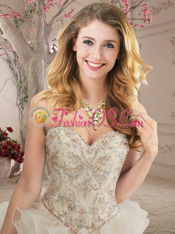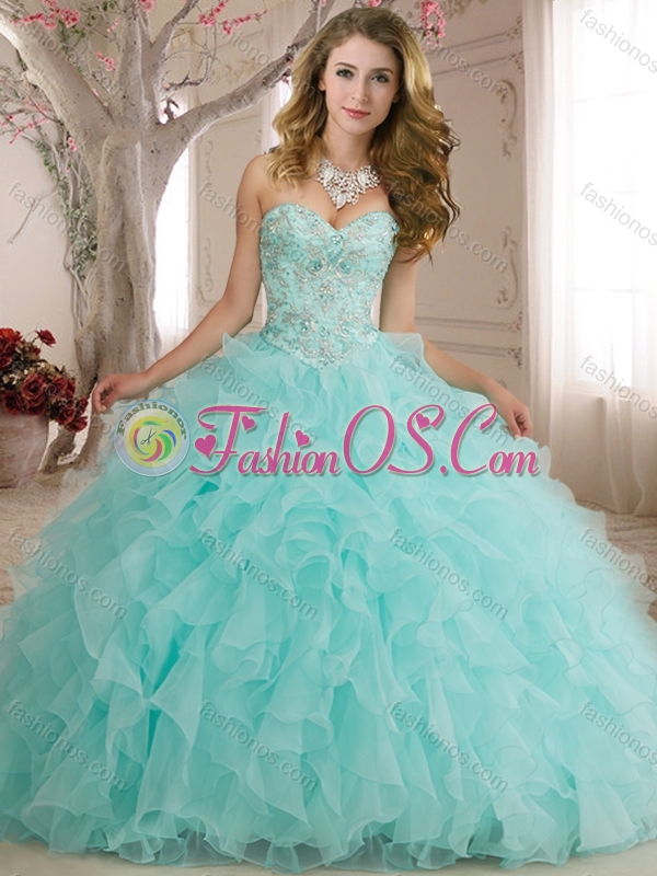 Best Selling Beaded and Ruffled Organza Quinceanera Dress in Apple Green