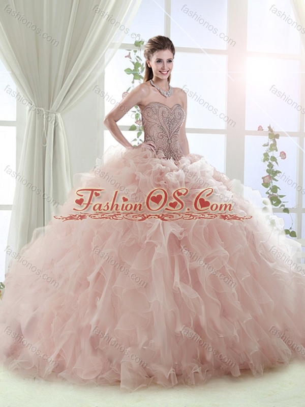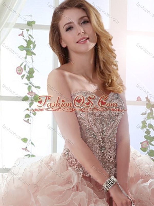 Gorgeous Sweep Train Baby Pink Detachable Quinceanera Skirts with Beading and Ruffles