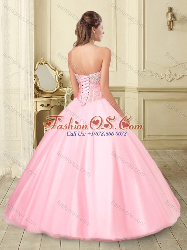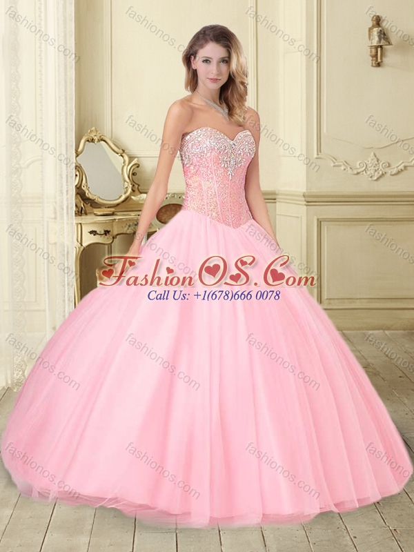 Visible Boning Beaded Sweetheart Quinceanera Dress in Baby Pink