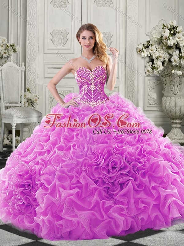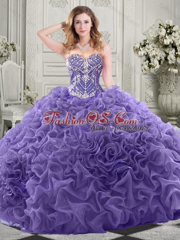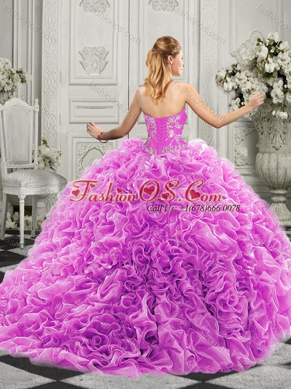 Elegant Chapel Train Lavender Quinceanera Gown with Beading and Ruffles