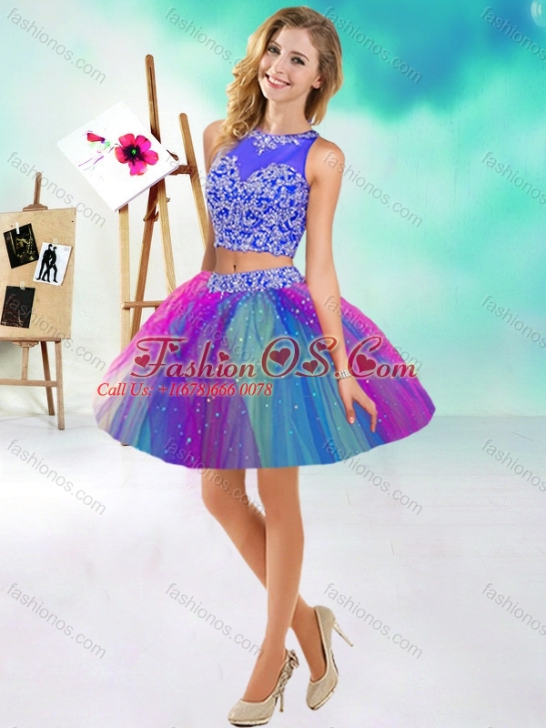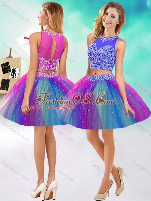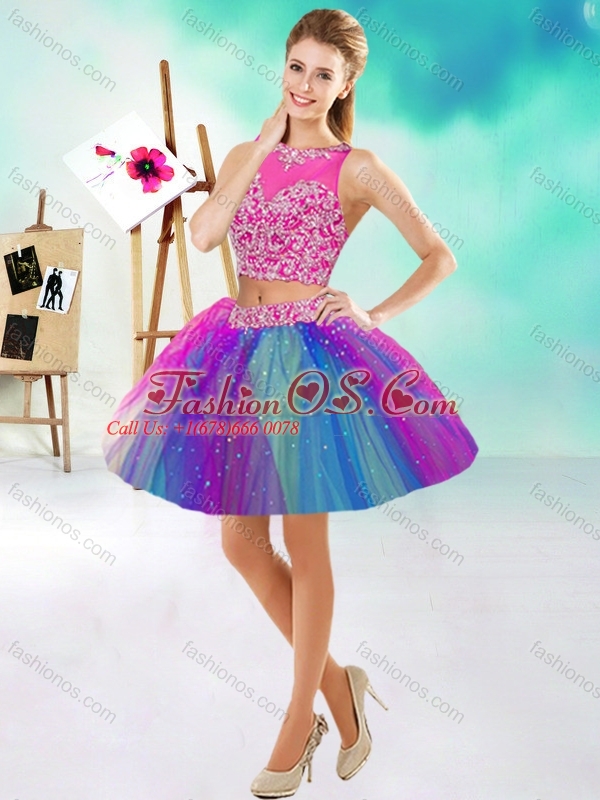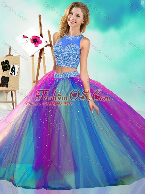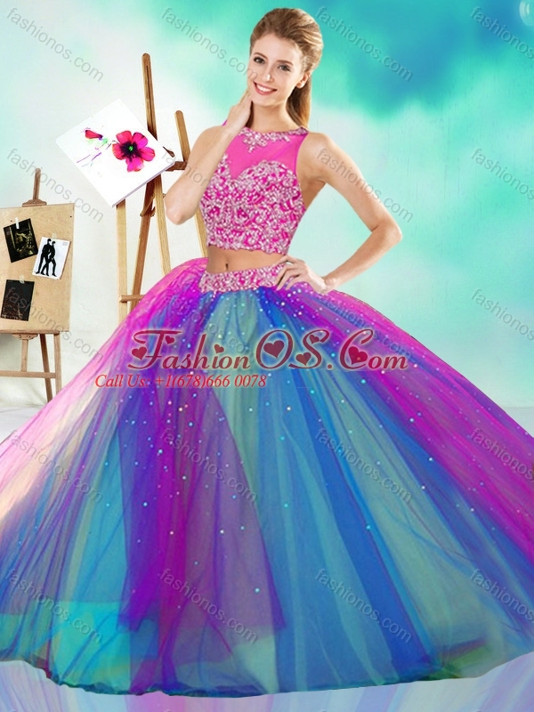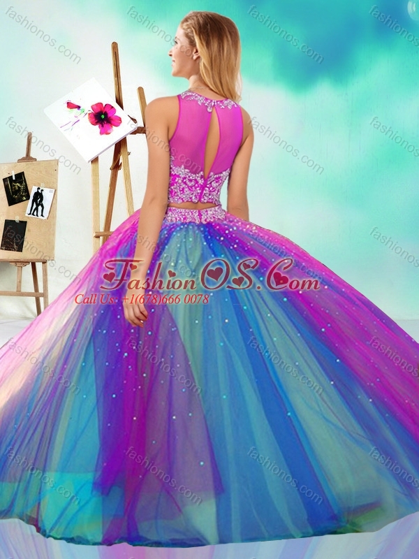 Lovely Beaded Scoop Tulle New Arrival Quinceanera Dress in Rainbow Colored