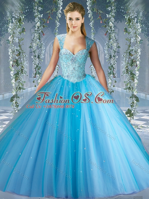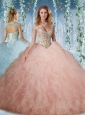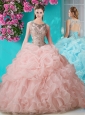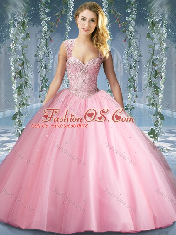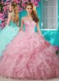 Perfect Pink Big Puffy Beaded Quinceanera Dress with Brush Train