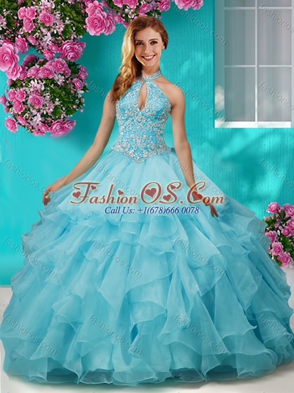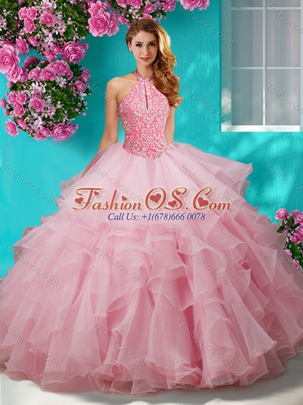 Popular Beaded and Ruffled Layers Quinceanera Gown with Halter Top