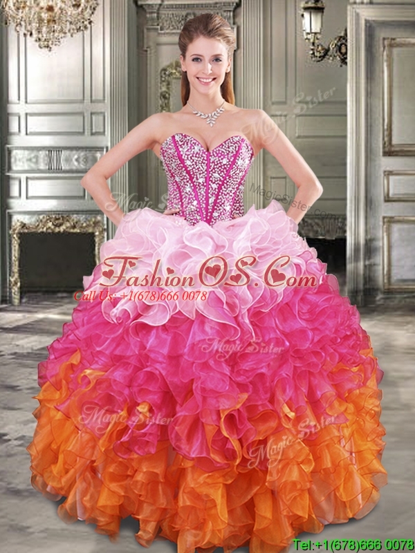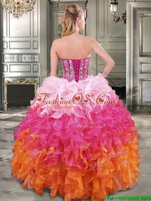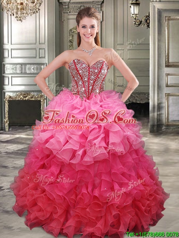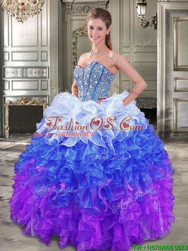 New Gradient Color Big Puffy Sweet 16 Dress with Beading and Ruffles