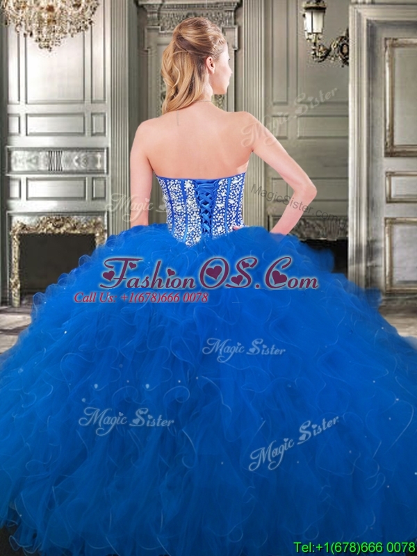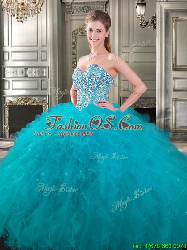 Popular Beaded and Ruffled Big Puffy Sweet 16 Dress in Fuchsia