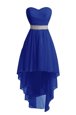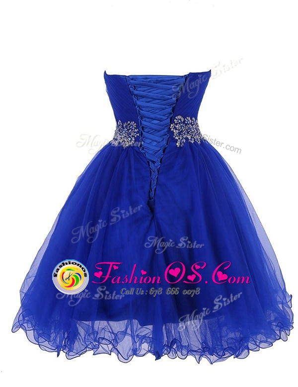 Baby Blue Organza Lace Up Prom Evening Gown Sleeveless Mini Length Belt