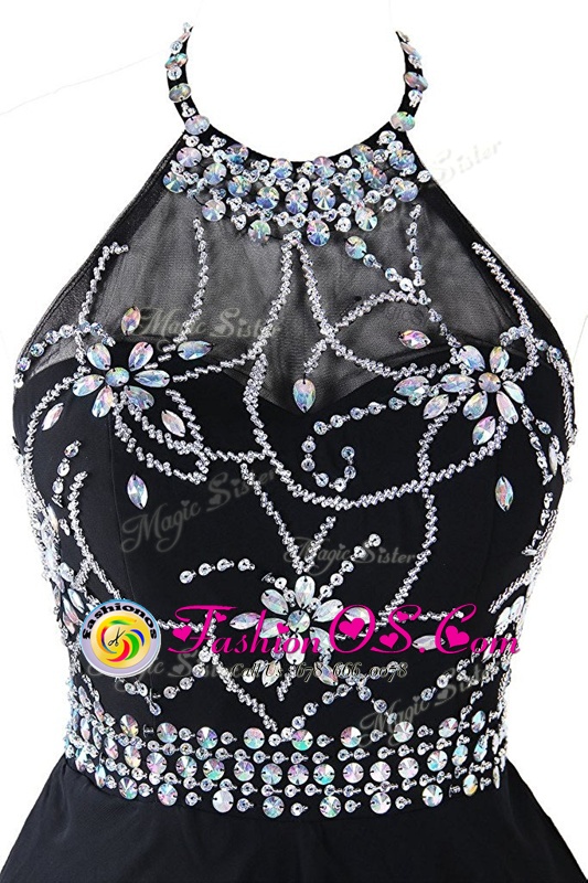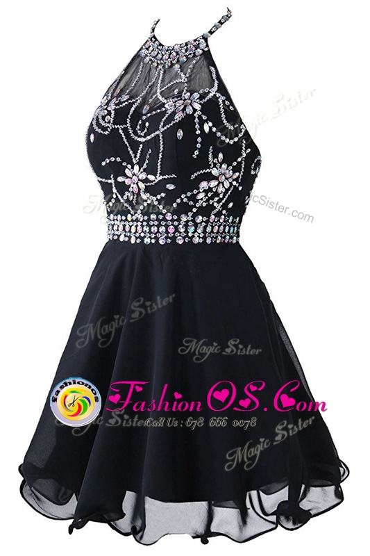 Super Scoop Sleeveless Zipper Homecoming Dress Black Organza