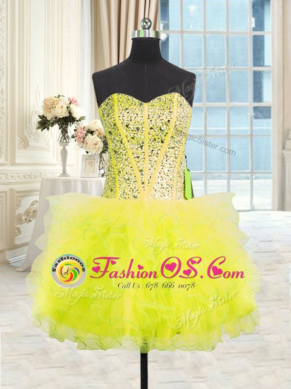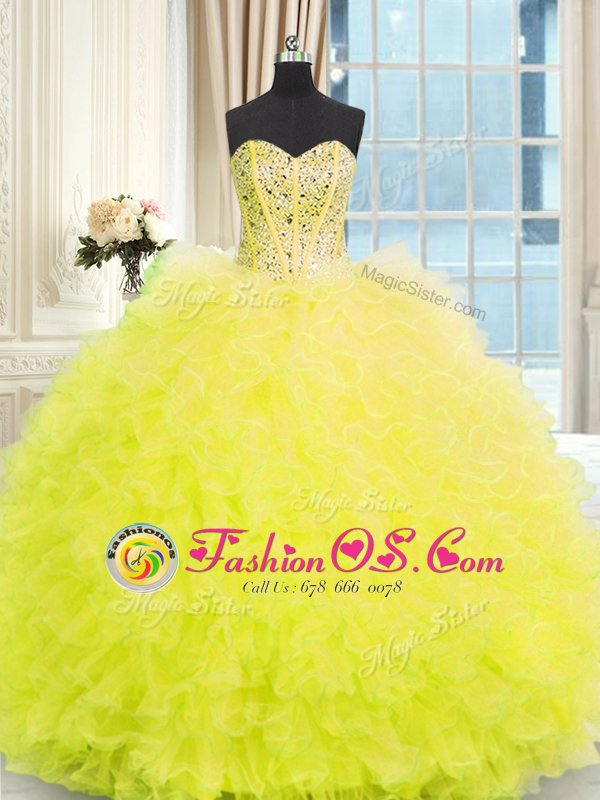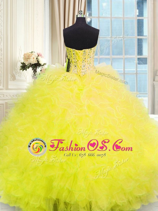 Three Piece Floor Length Lace Up Sweet 16 Quinceanera Dress Yellow and In for Military Ball and Sweet 16 and Quinceanera with Beading and Ruffles