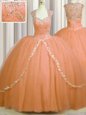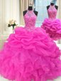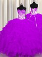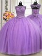 Lovely Three Piece Lavender Ball Gowns Tulle Sweetheart Sleeveless Beading Floor Length Lace Up 15 Quinceanera Dress