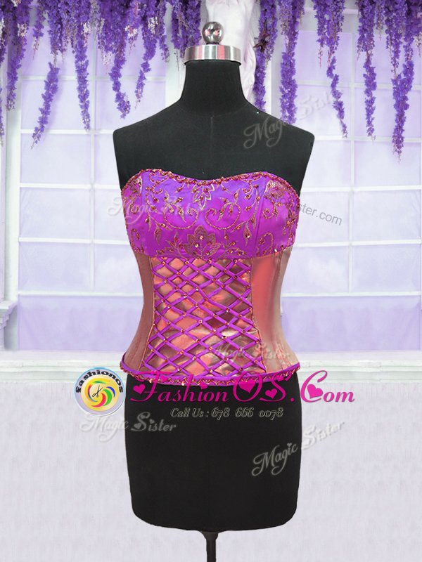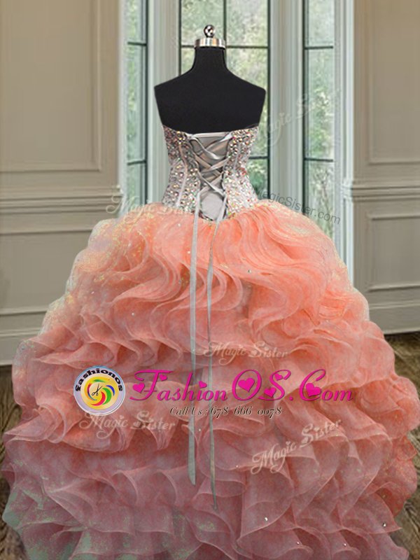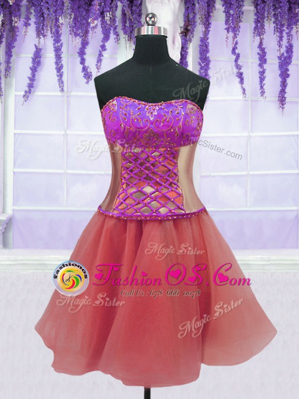 Four Piece Organza Strapless Sleeveless Lace Up Embroidery and Ruffles Quinceanera Dress in Watermelon Red
