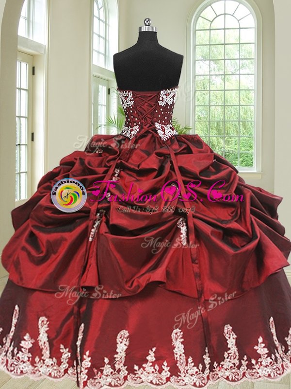 Elegant Taffeta Sleeveless Floor Length Ball Gown Prom Dress and Beading and Appliques and Pick Ups