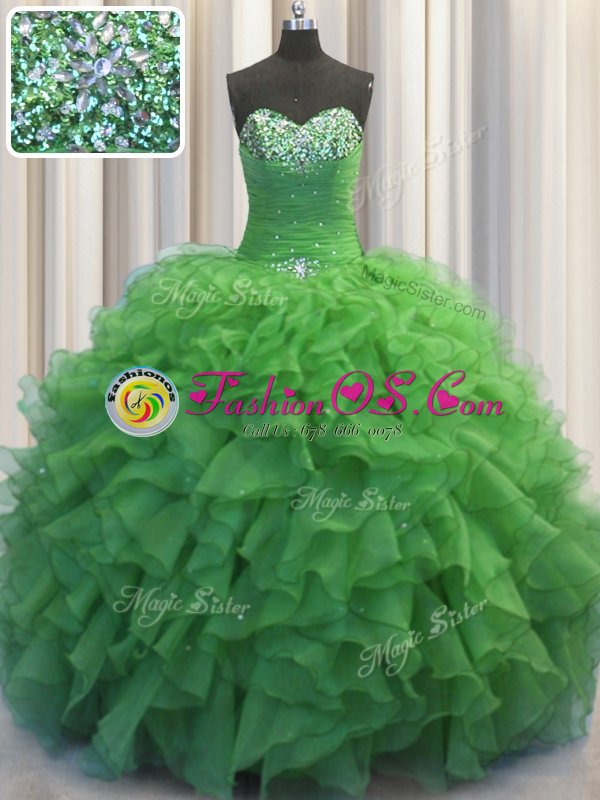Leopard V Neck Multi-color Ball Gowns Beading and Ruffles Quinceanera Dress Lace Up Organza Sleeveless Floor Length