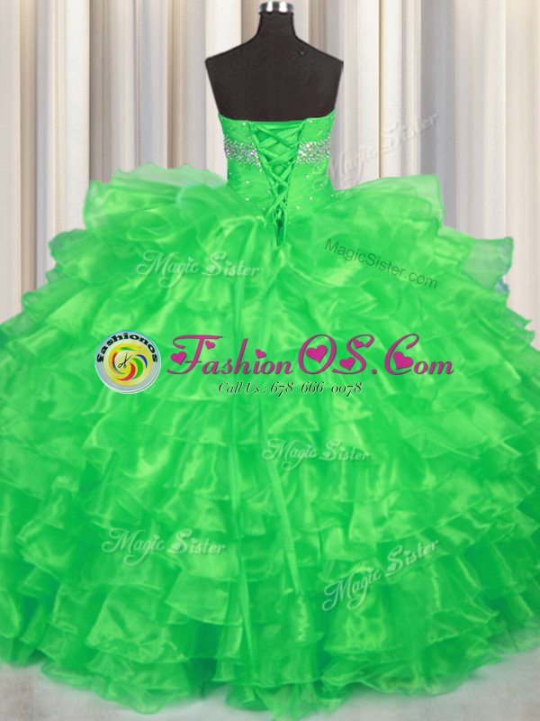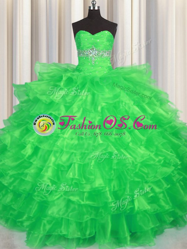 Ruffled Layers Floor Length Green Sweet 16 Dress Sweetheart Sleeveless Lace Up