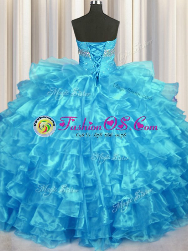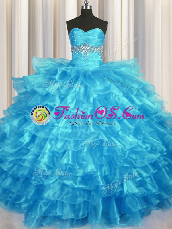 Baby Blue Sleeveless Beading and Ruffled Layers Floor Length Sweet 16 Quinceanera Dress