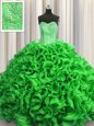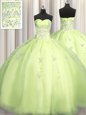Sexy Bling-bling Big Puffy Yellow Green Sweetheart Lace Up Beading Sweet 16 Dress Sleeveless