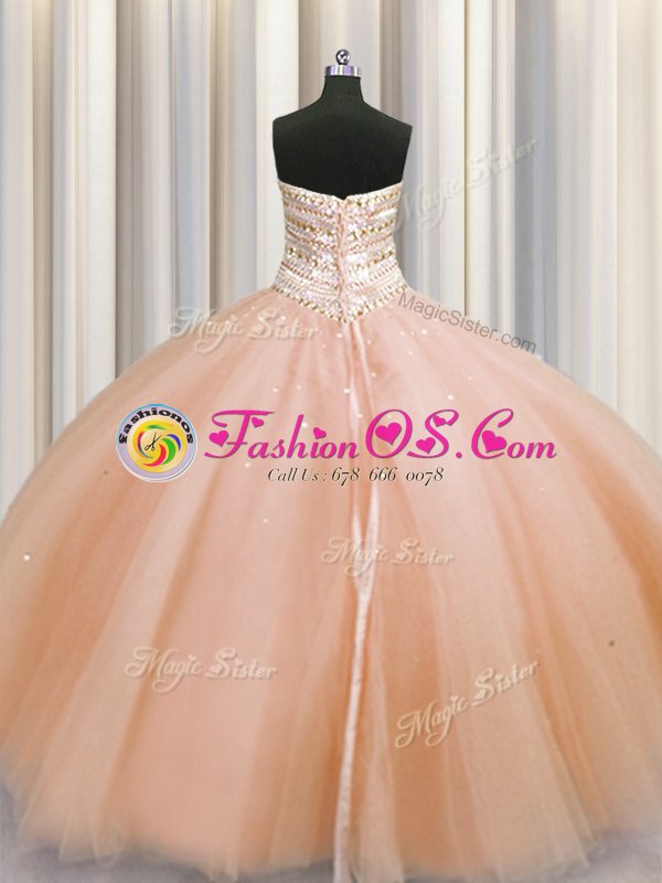 Bling-bling Really Puffy Peach Sleeveless Beading Floor Length Sweet 16 Quinceanera Dress