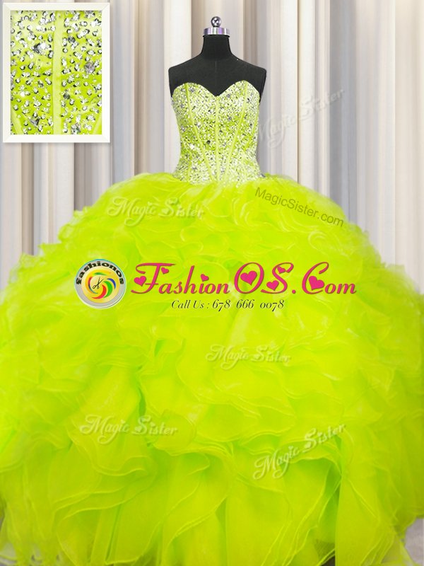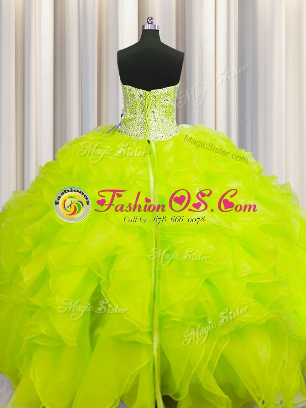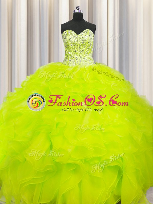 Affordable Visible Boning Beaded Bodice Yellow Quinceanera Dresses Military Ball and Sweet 16 and Quinceanera and For with Beading and Ruffles Sweetheart Sleeveless Lace Up