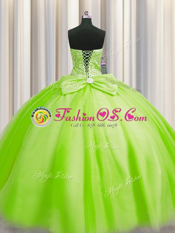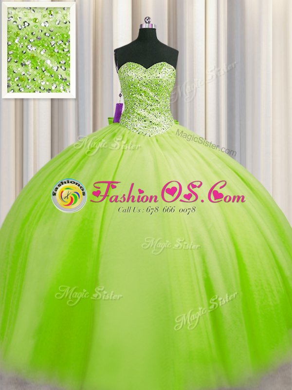 Trendy Big Puffy Tulle Lace Up Sweetheart Sleeveless Floor Length Quinceanera Gowns Beading