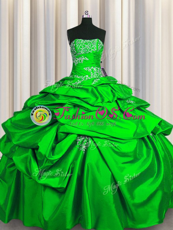 Sleeveless Lace Up Floor Length Appliques and Pick Ups Quince Ball Gowns