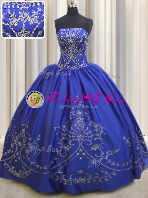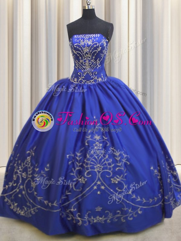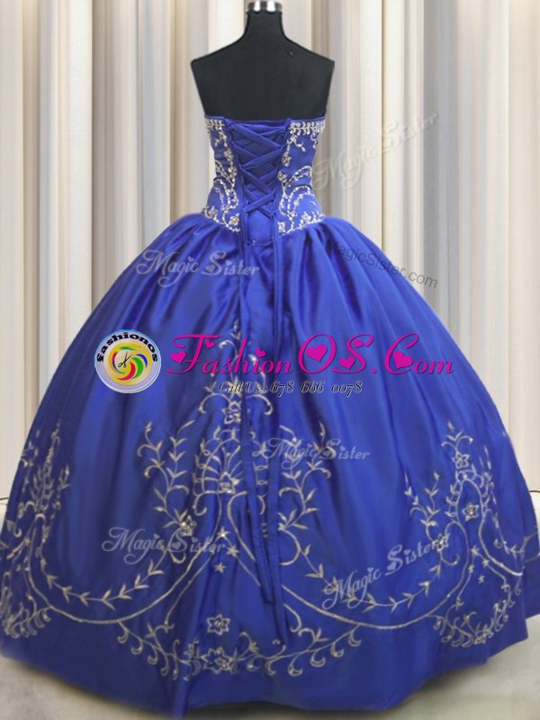 High Quality Embroidery Floor Length Ball Gowns Sleeveless Royal Blue Quince Ball Gowns Lace Up