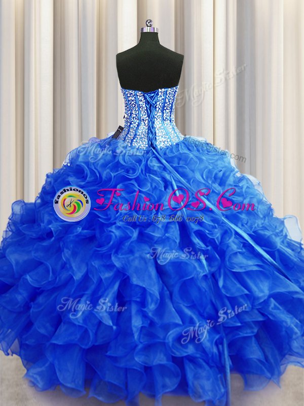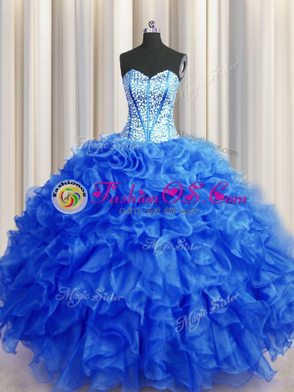 Fancy Visible Boning Beaded Bodice Sleeveless Beading and Ruffles Lace Up Sweet 16 Dress