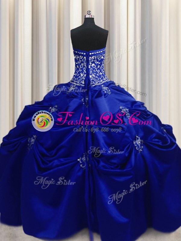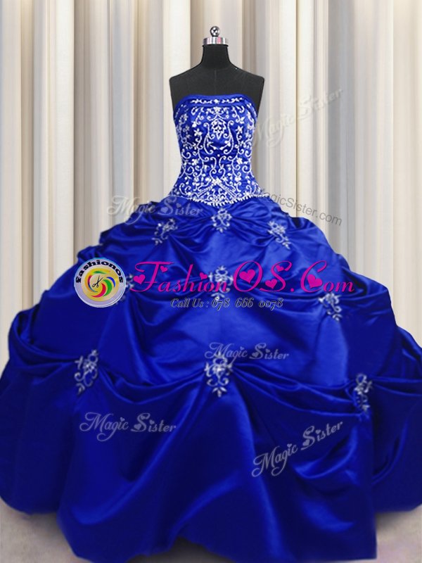 Simple Embroidery Royal Blue Sleeveless Taffeta Lace Up Sweet 16 Quinceanera Dress for Military Ball and Sweet 16 and Quinceanera