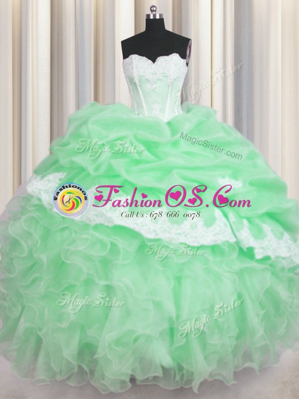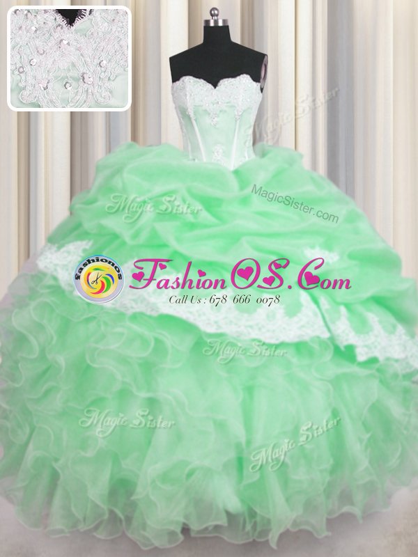 Pick Ups Green Sleeveless Organza Lace Up Sweet 16 Dresses for Military Ball and Sweet 16 and Quinceanera