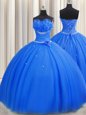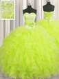 Sweet See Through Beading and Pick Ups 15th Birthday Dress Brown Lace Up Sleeveless Floor Length